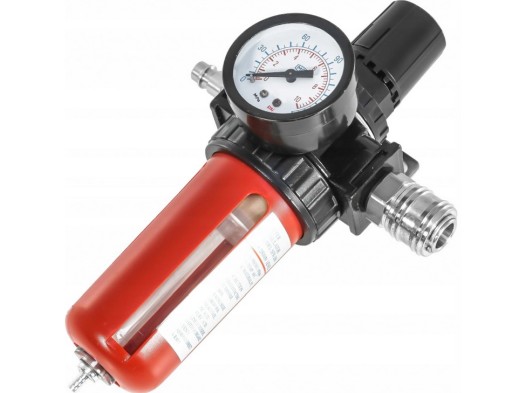 Konstrukcja pozwala na zamontowanie urządzenia na ścianie. Został wyposażony w kompletny blok przygotowania powietrza. Materiał, z którego wykonany został reduktor pozwala na długotrwałe użytkowanie produktu. Redukuje i utrzymuje stałe ciśnienie robocze, które jest niezbędne do prawidłowego działania, np. pistoletów lakierniczych, kluczy udarowych. Filtruje, odwadnia, odoleja i oczyszcza powietrze z wszelkich zanieczyszczeń. Oczyszcza sprężone powietrze z oleju, kondensatu wody i cząstek stałych.