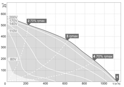 - Spręż. maksymalny: 570 Pa