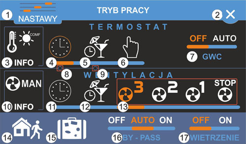 Widok pracy. Możliwość ustawienia czasu pracy i siły nawiewu w harmonogramie tygodniowym