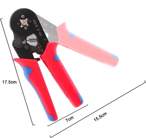 Szczypce do zaciskania konektorów posiadają budowę jak standardowe szczypce. Dwie rączki służące do wywierania siły nacisku oraz specjalne zakończenie pozwalające zacisnąć tulejkę lub konektor na przewodzie.