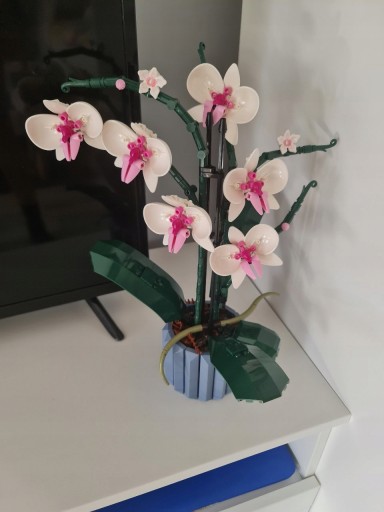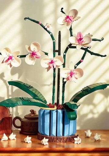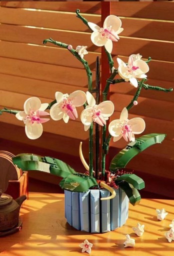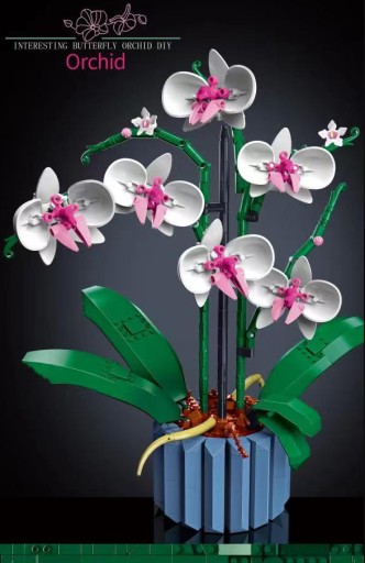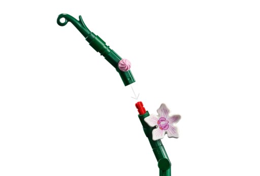Bez pośpiechu złóż z klocków wszystkie szczegóły biało-różowych kwiatów i wazonu. Inspirowany prawdziwymi orchideami model ma pięć liści u podstawy oraz dwa ruchome korzenie powietrzne, które nadają roślinie realistyczny wygląd.