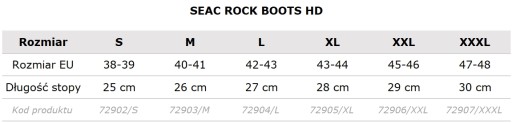 Tabela rozmiarów Butów SEAC