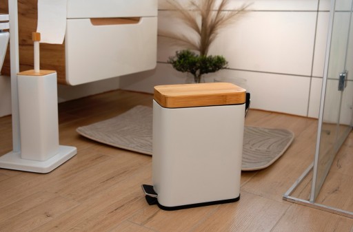 Pokrywa kosza wykonana została z drewna bambusowego. Jest to naturalne i ekologiczne rozwiązanie, coraz częściej wykorzystywane w łazienkach.