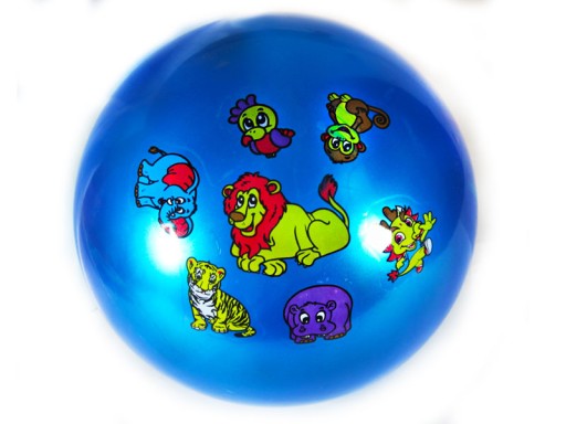 Super gumowa piłka, niezastąpiona podczas zabaw i gier na świeżym powietrzu. Śliczne, żywe kolory, z nadrukiem motyw ZWIERZĄTKA.