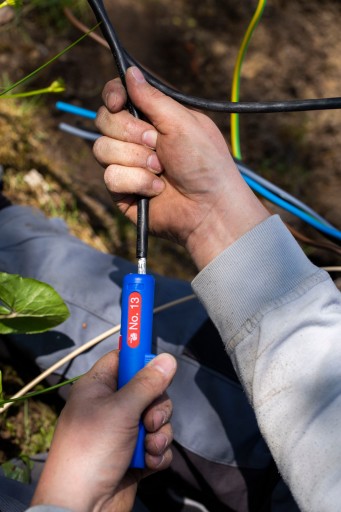 NARZĘDZIE DO ZDEJMOWANIA IZOLACJI - narzędzie przeznaczone do usuwania izolacji z kabli (6 -13 mm). W szafie był ogranicznik długości dla urządzeń serii lub dla kabli o tych samych wymiarach zadanych.