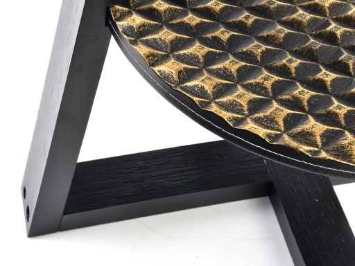- Posiada unikatową fakturę blatów ozdobionych przecieraną, złotą farbą