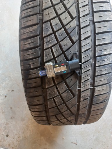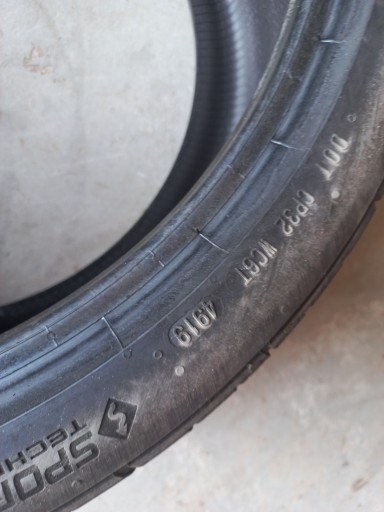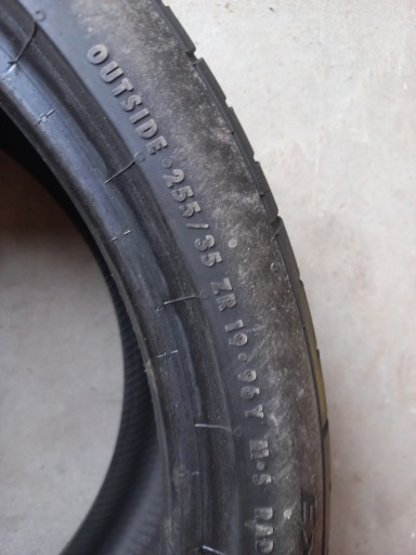 Jedna opona posiada uszkodzenie, zaznaczone na zdjeciu