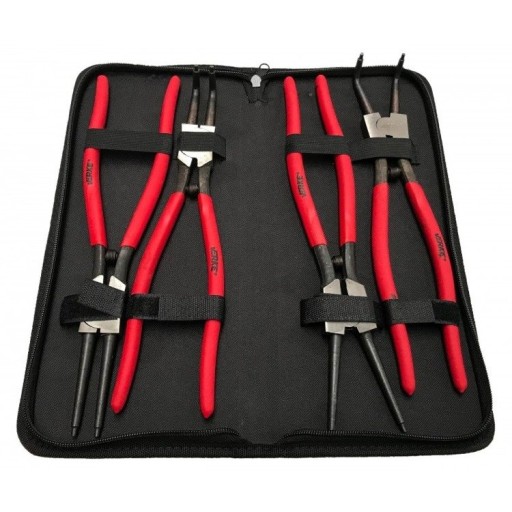 Profesjonalny zestaw szczypiec 13", 320mm . Szczypce segera zewnętrzne i wewnętrzne przeznaczone do zakładania i zdejmowania pierścieni zabezpieczających segera. Precyzyjnie toczone końcówki, rękojeści osłonięte miękkimi nakładkami z tworzywa.