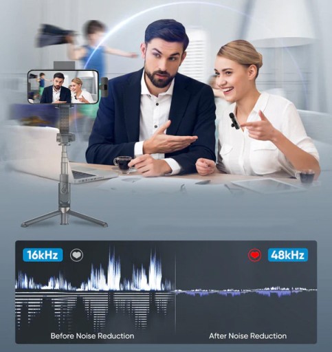 Mikrofon bezprzewodowy o wysokiej wydajności zapewnia stabilność sygnału Bluetooth. Odległość robocza to aż 20 M od odbiornika bez przeszkód w nagraniu.