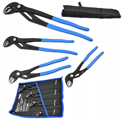 Zestaw szczypiec nastawnych do rur, wykonane zostały z wytrzymałej stali narzędziowej CrV. Przeznaczone do chwytania rur, profili kątowych, nakrętek itp. W zestawie znajdują się szczypce w czterech rozmiarach.