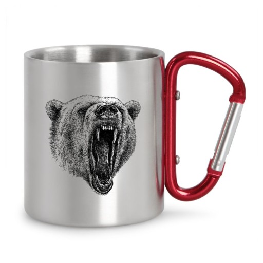 - Czerwona klamra umożliwia przypięcie kubka do paska czy plecaka, przez co nie zajmuje niepotrzebnie miejsca wewnątrz
