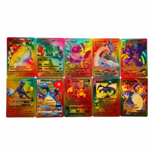 Karty wykonane z wysokiej jakości złotej folii, wodoodporne i trwalsze niż zwykłe papierowe karty. Dodaj tęczowe karty do swojej kolekcji i pozwól im błyszczeć.