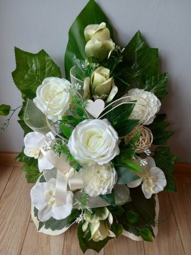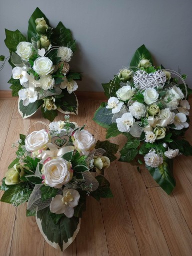 DWIE KOMPOZYCJE SZTUCZNE NA GRÓB + BUKIET DO WAZONU