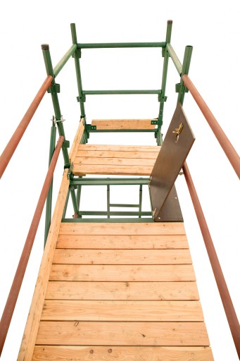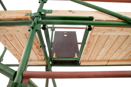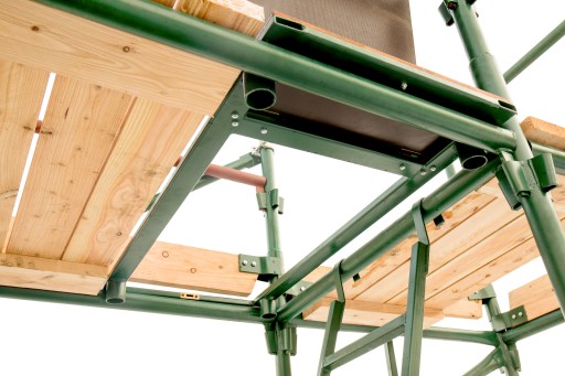 System choinkowy (klinowy) pozwala na dowolne dopasowanie wysokości podestu do potrzeb wykonywanej pracy. Z kolei łączenia klinowe nie tylko zapewniają bezpieczeństwo i stabilność całej konstrukcji, ale umożliwiają również montaż dodatkowych elementów takich jak: podesty, drabinki bądź mocowania kotwiące do ściany.