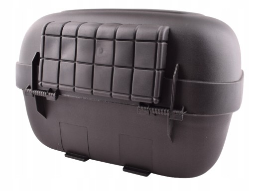 Uniwersalny, czarny kufer z czerwonymi odblaskami