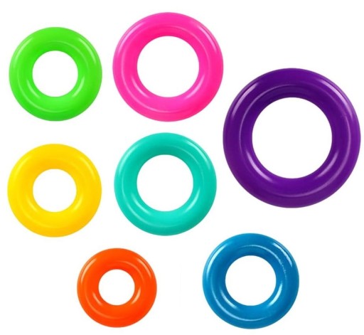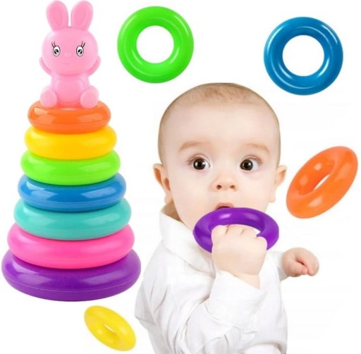 Maluch układając krążki jeden po drugim, ćwiczy sprawność małych rączek i pobudza ciekawość.