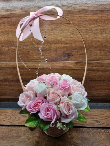 ❤️ Ozdobny kosz, bukiet z kwiatami mydlanymi - piękny prezent oraz delikatnie pachnąca dekoracja dla twojego wnętrza ❤️