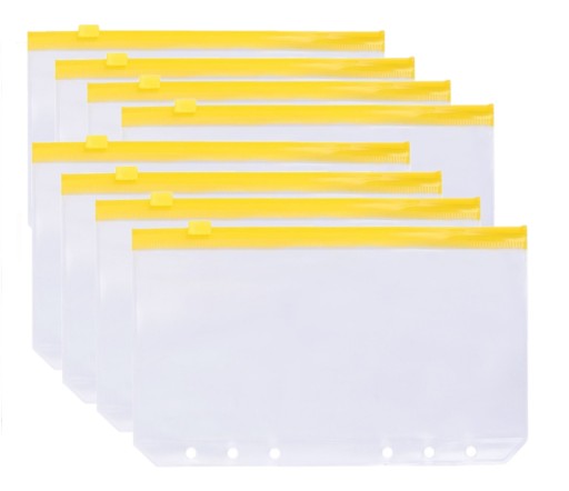 Wkłady wodoodporne z zamknięciem na suwak do standardowego segregatora A6 na 6 ringów. Produkt znajdzie zastosowanie w planerach budżetowych, celach kolekcjonerskich itp.