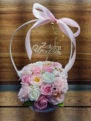 Bukiet kosz upominkowy róże kwiaty mydlane PACHNĄCE topper do wyboru