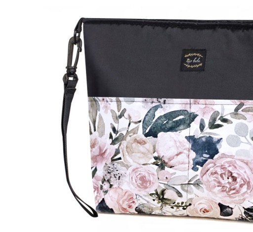 Wyposażona jest w regulowany pasek, który doskonale sprawdzi się za równo do zawieszenia na wózku jak i do noszenia na ramieniu, oraz w uchwyty do zamocowania na każdej prowadnicy wózka na zasadzie przewlekania jak pętelka.
