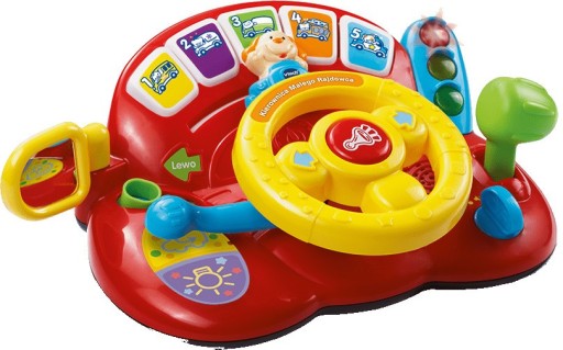 Kierownica, umożliwiająca odgrywanie ról, zapoznaje dziecko z nazwami pojazdów, zwierząt, kolorów i liczb. Dzięki ciekawym zwrotom i realistycznym dźwiękom samochodu przyciąga uwagę dziecka. Ponadto rozwija wyobraźnię dziecka poprzez obracanie kierownicy, przemieszczanie pojazdu i nasikanie klaksonu. Duże boczne lusterko, przycisk przyspieszenia i podświetlane światła drogowe zapewniają świetną zabawę.
