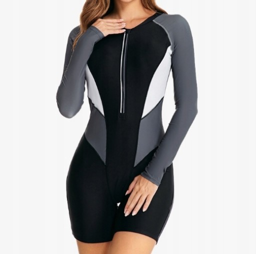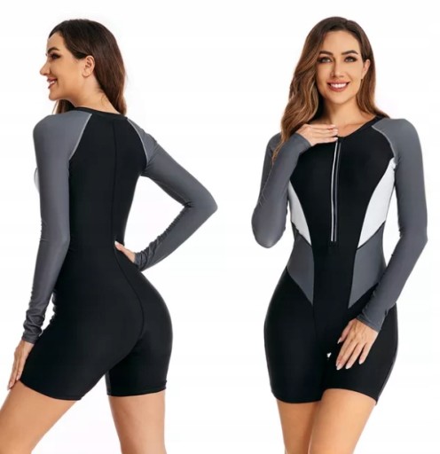 Kostium z długim rękawem i krótkimi spodenkami świetnie sprawdzi się na basen, plażę, do nurkowania lub morsowania