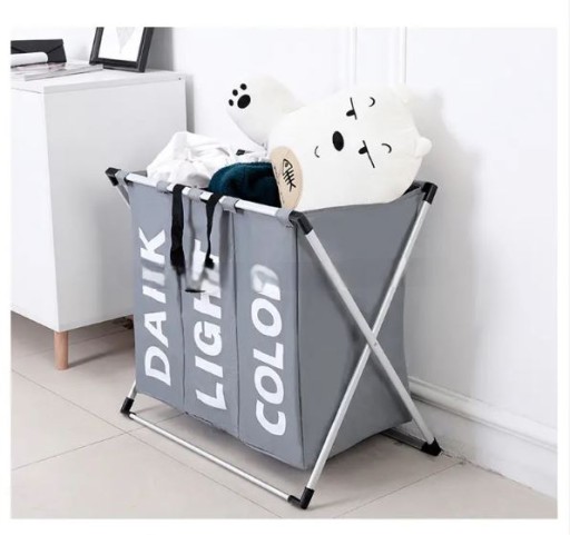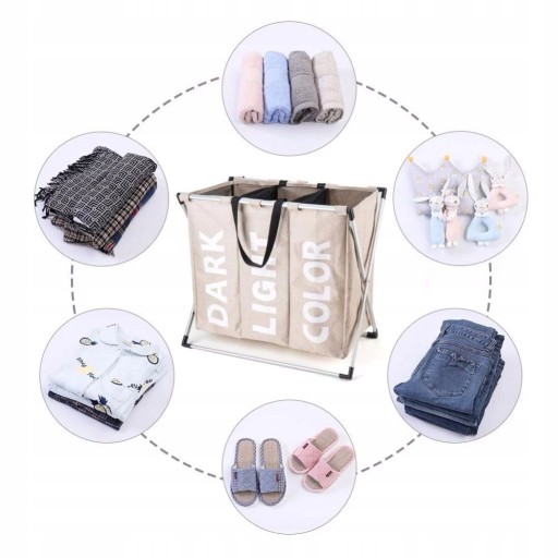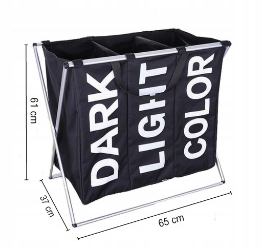 3 komorowy kosz na pranie w wodoodpornego i trwałego materiału na aluminiowym stelażu ułatwi każdej pani domu zapanowanie nad brudnym praniem, ręcznikami, bielizną itp. Każda komora jest opisana i zamykana osobnym ściągaczem.