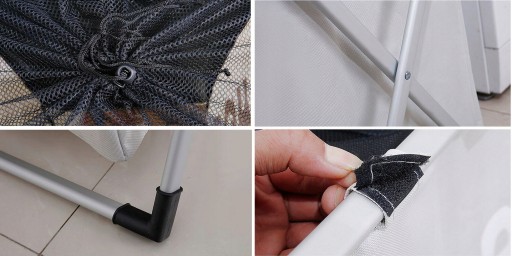 A dzięki łatwemu i szybkiemu montażowi na rzepy można kosz używać bez aluminiowego stelaża zbierając po całym domu rzeczy do prania.