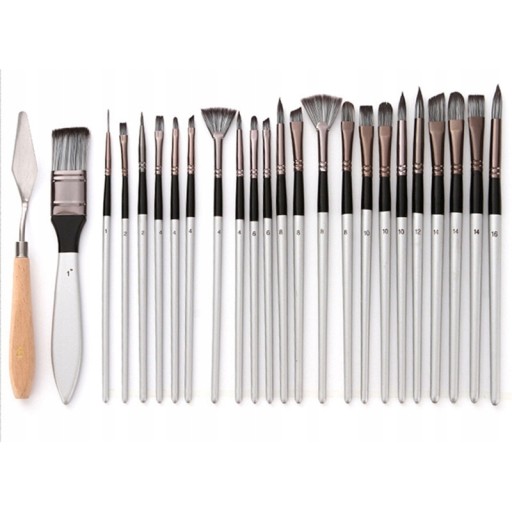24 pędzli różnych kształtach i rozmiarach