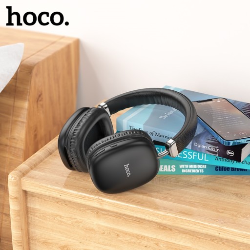 hoco. W35 to bezprzewodowe słuchawki nauszne / nagłowne w technologii Bluetooth 5.3 ze złączem AUX Jack 3.5mm oraz wejściem na kartę pamięci microSD / Trans Flash, wyposażone w mikrofon dający możliwość prowadzenia rozmów telefonicznych oraz przyciski do sterowania muzyką lub rozmowami.