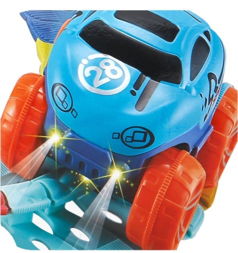 Do zestawu zostało dołączone świecące autko zasilane bateriami, które posiada wymienną kabinę w kolorze czerwonym i niebieskim. Dzieci mogą organizować rajdy, zmieniając kabinę i zachwycając się światłem podczas zabawy.