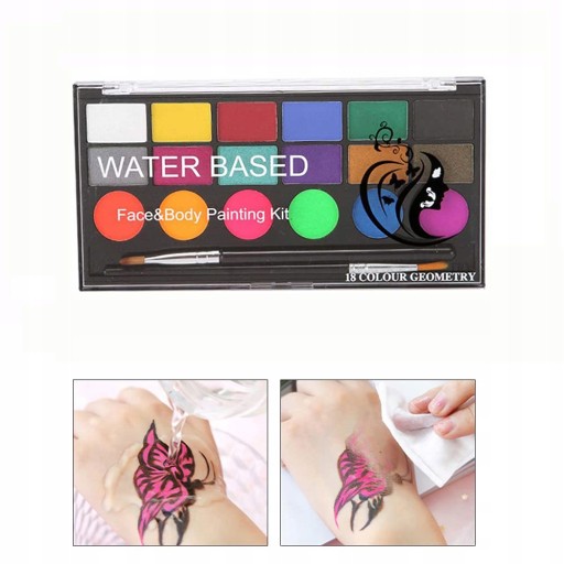 - Zestaw do makijażu pomalowanego na twarz i ciało jest całkowicie na bazie wody, więc czyszczenie to pestka.