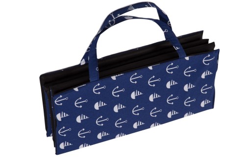 Materac składany jest na 6 części, wyposażony jest w dwie szerokie rączki ułatwiające noszenie oraz mocną gumę zapewniającą szybki montaż i demontaż maty.