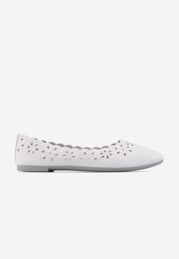 SREBRNE BALERINKI DAMSKIE AŻUROWE WKŁ. EKOSKÓRA