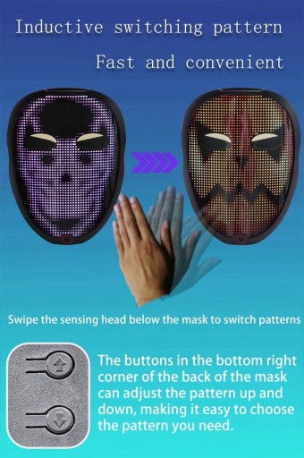 Led Luminous Mask ma 45 dynamicznych trybów wyświetlania i 70 statycznych obrazów wyświetlania, możesz ustawić różne pojedyncze kolory, lampy błyskowe, płynne gradienty i wielokolorowe w zależności od okazji, maski LED można łatwo połączyć z Bluetooth, wystarczy pobrać aplikację Shining Mask I użyj aplikacji do zaprojektowania unikalnej personalizacji DIY, możesz przesyłać tekst/obrazy za pośrednictwem aplikacji, maska Led Cool Digital Glow Face Rave, dzięki czemu będziesz bardziej atrakcyjny dla wszystkich, to najbardziej niesamowite maski Led