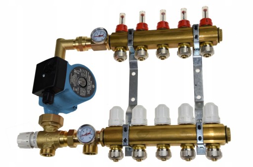 Komplet rozdzielacza z mosiądzu do ogrzewania podłogowego w budynkach.