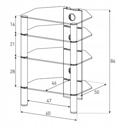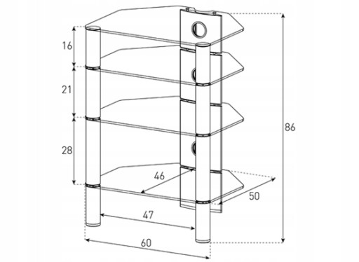 Blat stolika o szerokości 60cm wraz z trzema szklanymi półkami zapewnia idealne miejsce do przechowywania sprzętów Hi-Fi, takich jak odtwarzacz CD/DVD/Blu-Ray, amplituner, streamer, przedwzmacniacz czy gramofon.