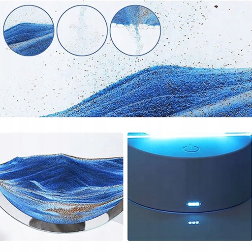 Całe urządzenie do usuwania piasku jest pod twoją kontrolą. Za każdym razem, gdy delikatny ruchomy piasek jest obracany, zmienia się obraz. Różne piaski mają różną wagę, a opadanie ruchomych piasków tworzy fascynujący obraz. kilka minut i obrócić o 180°, możesz cieszyć się uroczym obrazem spadających ruchomych piasków.