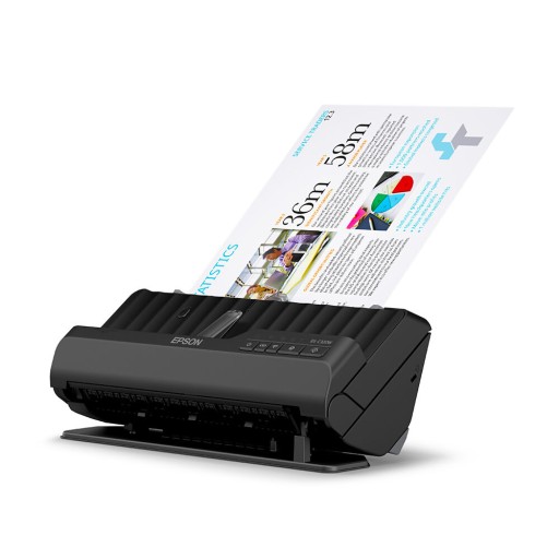 Gdy skaner znajduje się w położeniu do skanowania z obrotem o 180 stopni, papier można skanować bez zwiększania wymiarów urządzenia, dzięki czemu doskonale sprawdza się on w miejscach o ograniczonej przestrzeni. Łączność Wi-Fi zapewnia elastyczność w zakresie lokalizacji urządzenia. Zgodność z systemami Windows i Mac, Chromebookami, Android Mopria, Apple Airprint i aplikacją SmartPanel firmy Epson.