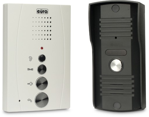 Domofon audio, zestaw składa się z głośnomówiącego (bezsłuchawkowego) unifonu oraz małogabarytowej kasety zewnętrznej, gong, sterowanie ryglem elektromagnetycznym, nowoczesne wzornictwo, przycisk otwierania furtki oraz przycisk otwierania drugiego wejścia (bramy, drzwi, drugiej furtki, itp.), przycisk dyskretnego podsłuchu otoczenia kasety zewnętrznej, obudowa unifonu w kolorze białym, zasilacz 12V DC w zestawie.