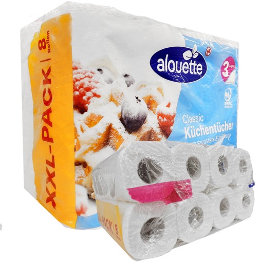 БУМАЖНОЕ ПОЛОТЕНЦЕ ALOUETTE 8 РОЛИКОВ, 3-СЛОЙНОЕ