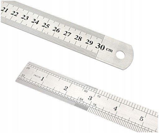 - Krawędź górna (metryczna) z podziałką o rozdzielczości 1 mm, a dolna - 0,5 mm