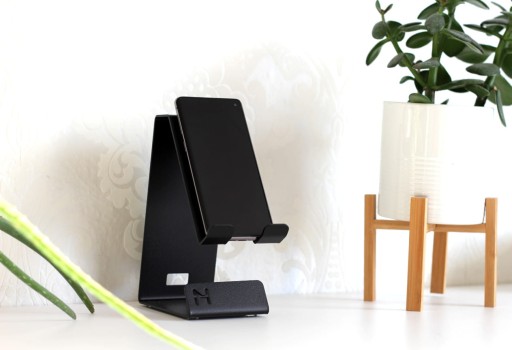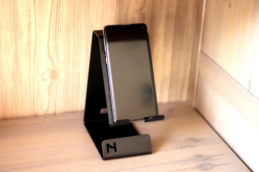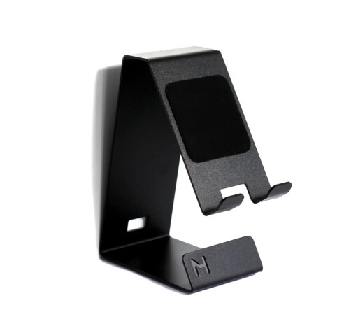 Wysokiej jakości, metalowy stojak na telefon z wygodnym otworem na kabel zasilający. Wykonany z najlepszych jakościowo i technologicznie stali konstrukcyjnych pokrytych grubą warstwą cynku. Stojak finalnie został dwustronnie polakierowany wysokiej jakości farbą proszkową o drobniej strukturze zapewniającej ochronę przed zarysowaniami oraz płowieniem.