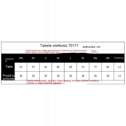 Funkcja: ochrona talii, kształtowanie, brzuch, wsparcie klatki piersiowej, regulacja, inne