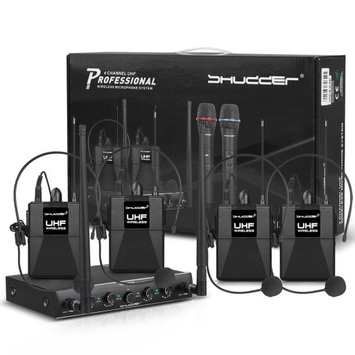 Czterokanałowy zestaw mikrofonów bezprzewodowych Shudder SDR1004 UHF 4 mikrofony nagłowne z mikroportem