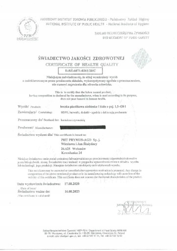 - atest dopuszczający beczkę do kontaktu z żywnością