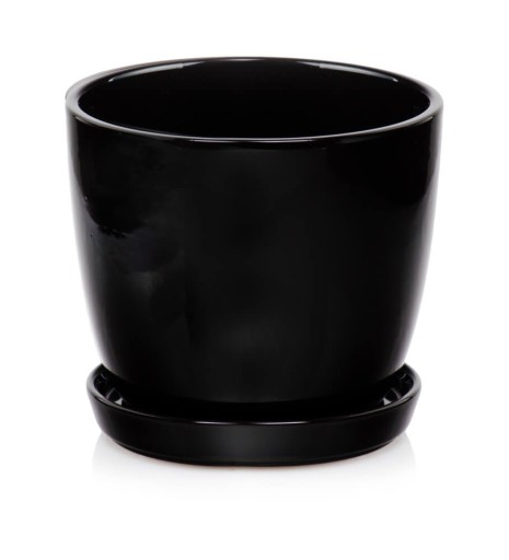 Łącząca w sobie prostotę i elegancję - ceramiczna doniczka czarna z przyklejoną (zintegrowaną) podstawką