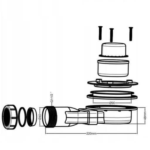 - Syfon brodzikowy z uszczelkami.