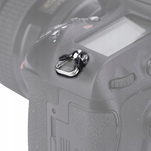 Trójkątne pierścienie paska aparatu pasujące do uchwytów paska na aparacie.