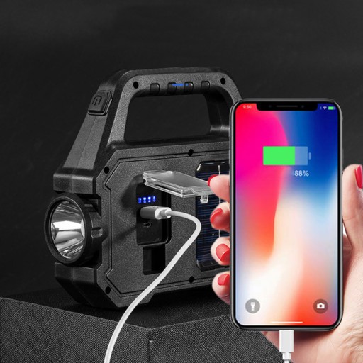 - Zasilanie latarki: solarne + wbudowany akumulator